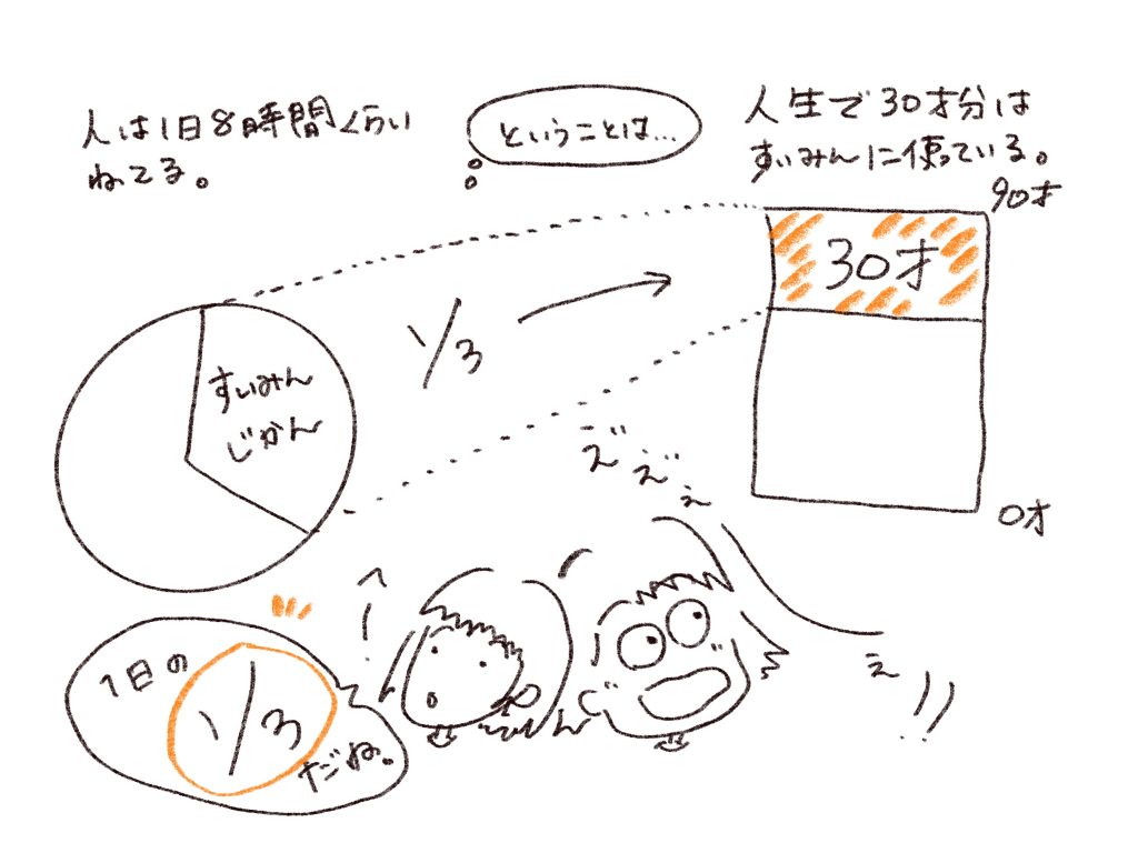 もし、90歳くらい生きるとしたら、3分の1が睡眠時間だとしたら、30歳分は夢の中で生きていることになる、ということだ。