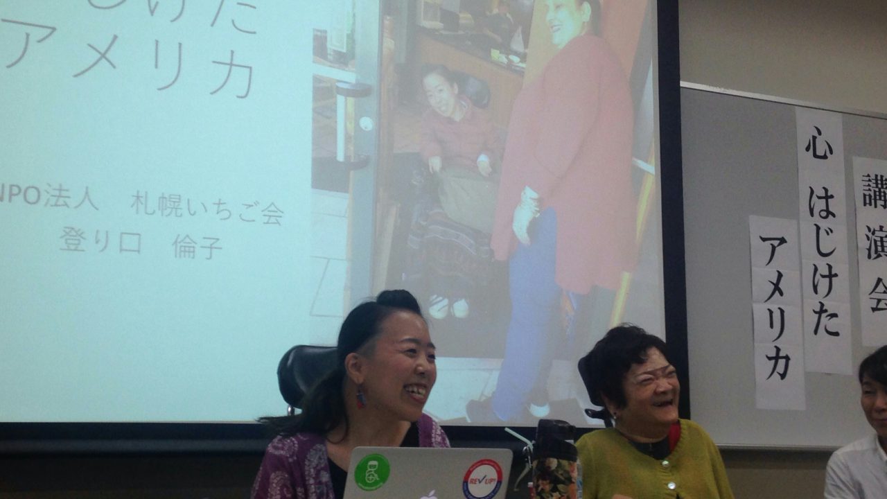 昨日は、NPO法人札幌いちご会で講演させていただいた。アメリカから帰国して初めてのアメリカ旅行に関する講演だ。今回は、メインで所属している法人の相談員として、障害者の施設や相談現場を学びに、シカゴ州とカリフォルニア州に1ヶ月半暮らしてきた。その研修の内容については、きちんと私が噛み砕いて吸収してから報告する予定であったため、いちご会では、アメリカに行っての感想をとにかく話す意気込みでいた。